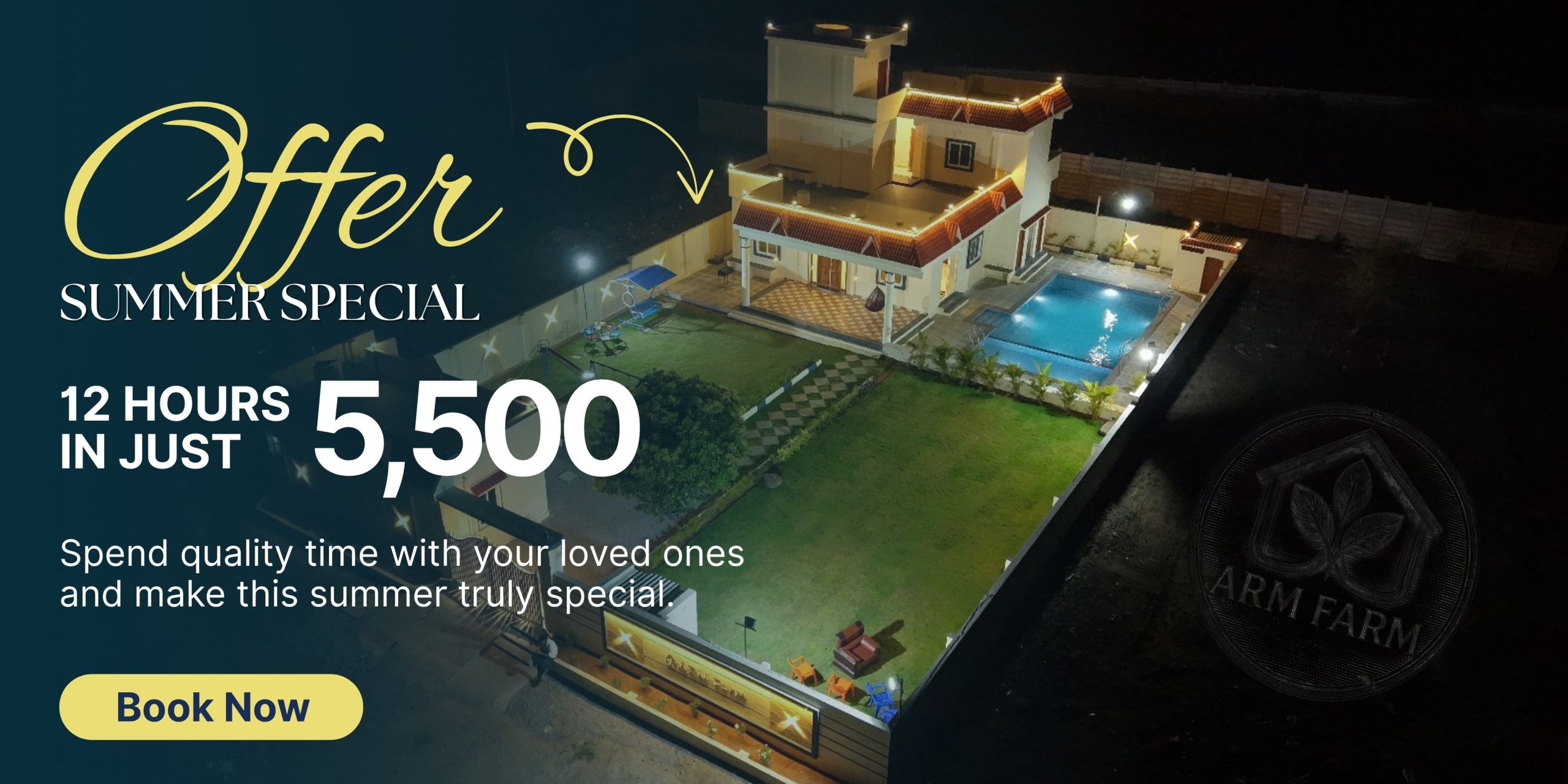 At ARM Farm House, everything is designed to give you a perfect blend of comfort, fun, and relaxation. From a private swimming pool and spacious villa to open outdoor areas and entertainment spaces, enjoy a complete getaway experience with your family and friends near Hyderabad.